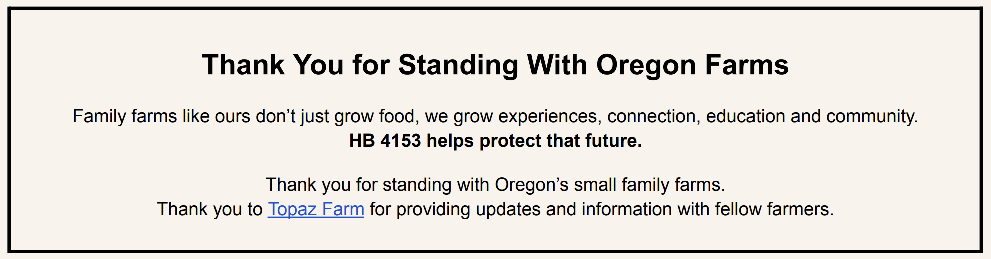 ✅Use hashtags: #KeepOregonFarming #YesOnHB4153 #ProtectORFarmStores